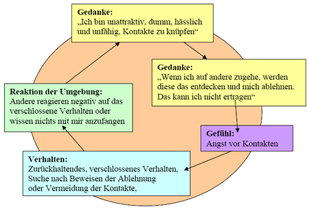 Vielleicht ist es deutlich geworden, dass sowohl bei E. als auch bei K. am Anfang die Gedanken waren. Die Gedanken führten zu Gefühlen und diese wiederum zum entsprechenden Verhalten.